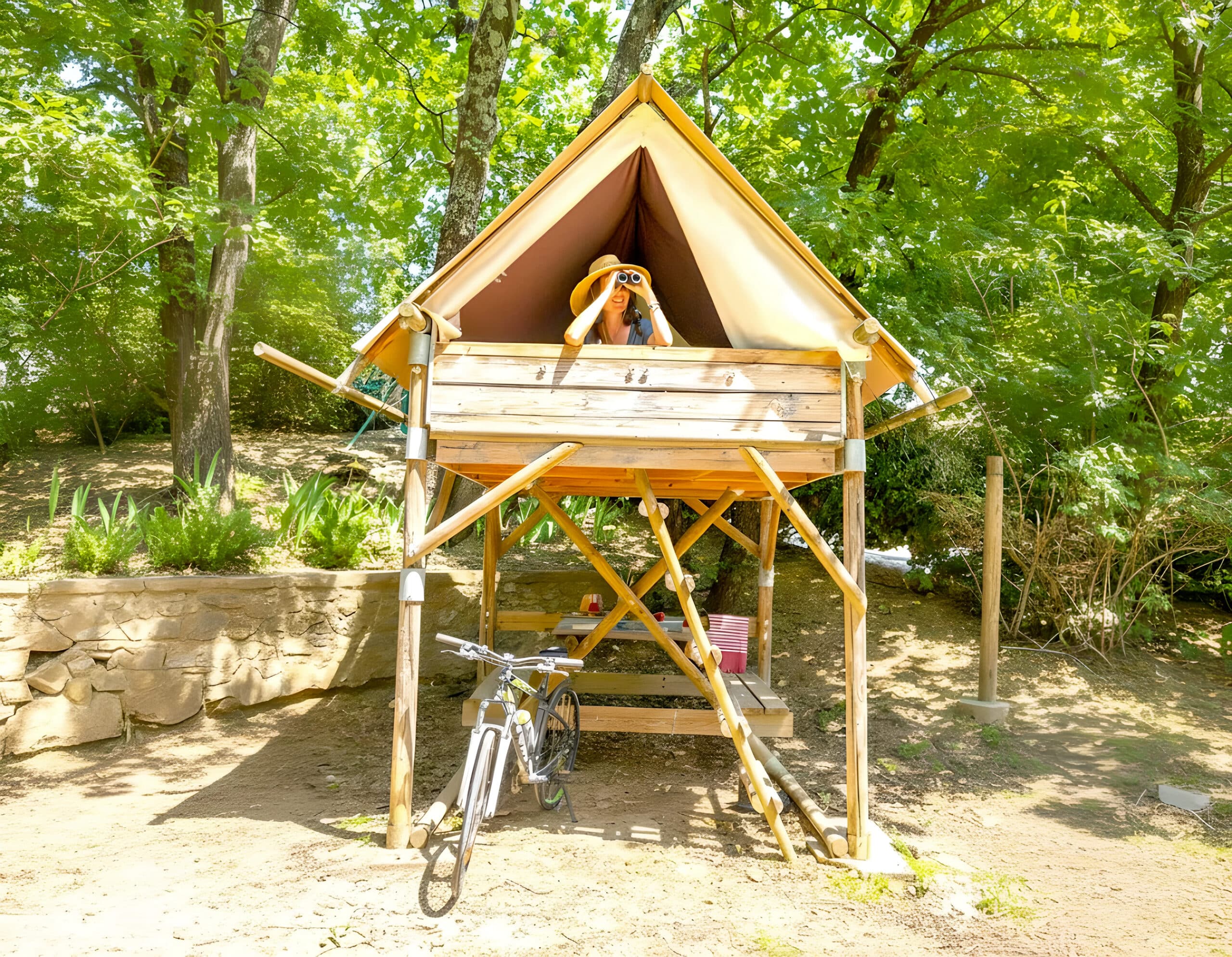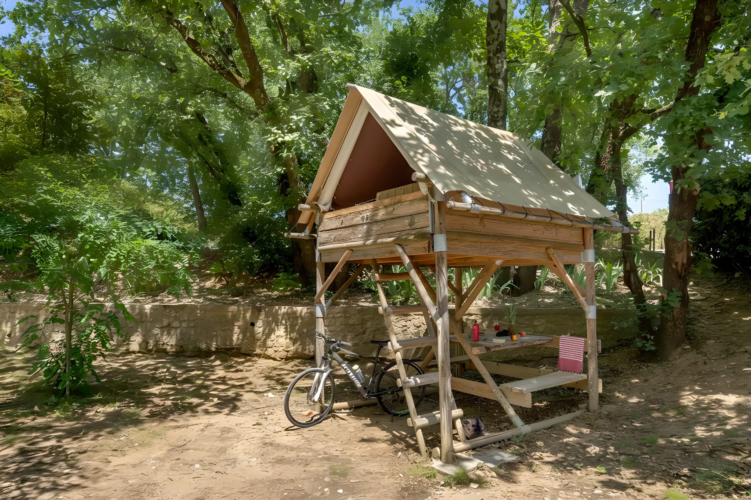 Voor een romantisch verblijf in een bijzondere omgeving kiest u voor onze Tipi-hut op palen, bereikbaar via een ladder.